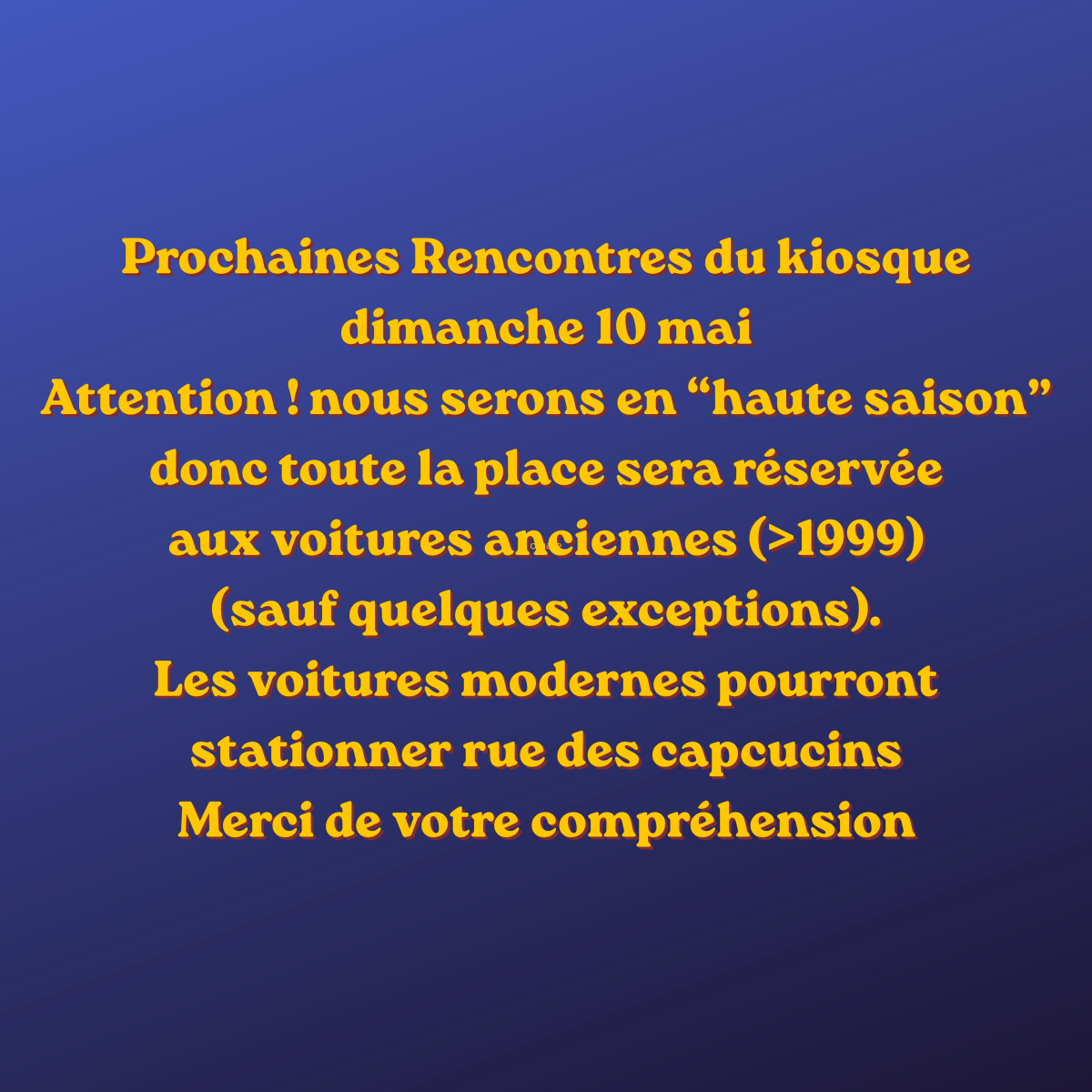 Tous les propriétaires de voitures anciennes de plus de 30 ans sont invités à rejoindre cette association s'ils souhaitent contribuer à l'organisation de ces rassemblements.